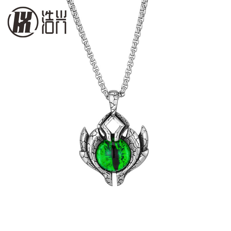 Stainless Steel Necklace 2025 New Hip-Hop Men's Trendy Brand Niche Design Green Devil's Eye Titanium Steel Necklace for Men