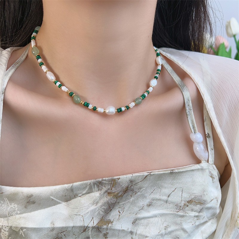 Natural Pearl Necklace Peacock Stone Green Beaded Clavicle Chain Women's Accessories Light Luxury Niche New Style Trendy Necklace