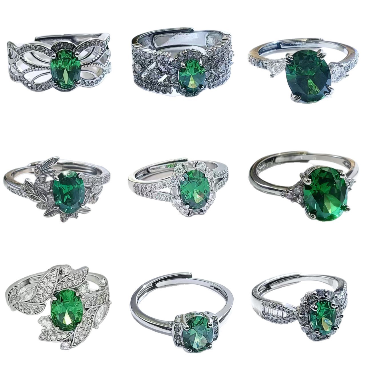 Live Broadcast Hot-Selling Imitation Natural Emerald Open Ring Women's Fashion Versatile Green Zircon Gemstone Ring Jewelry