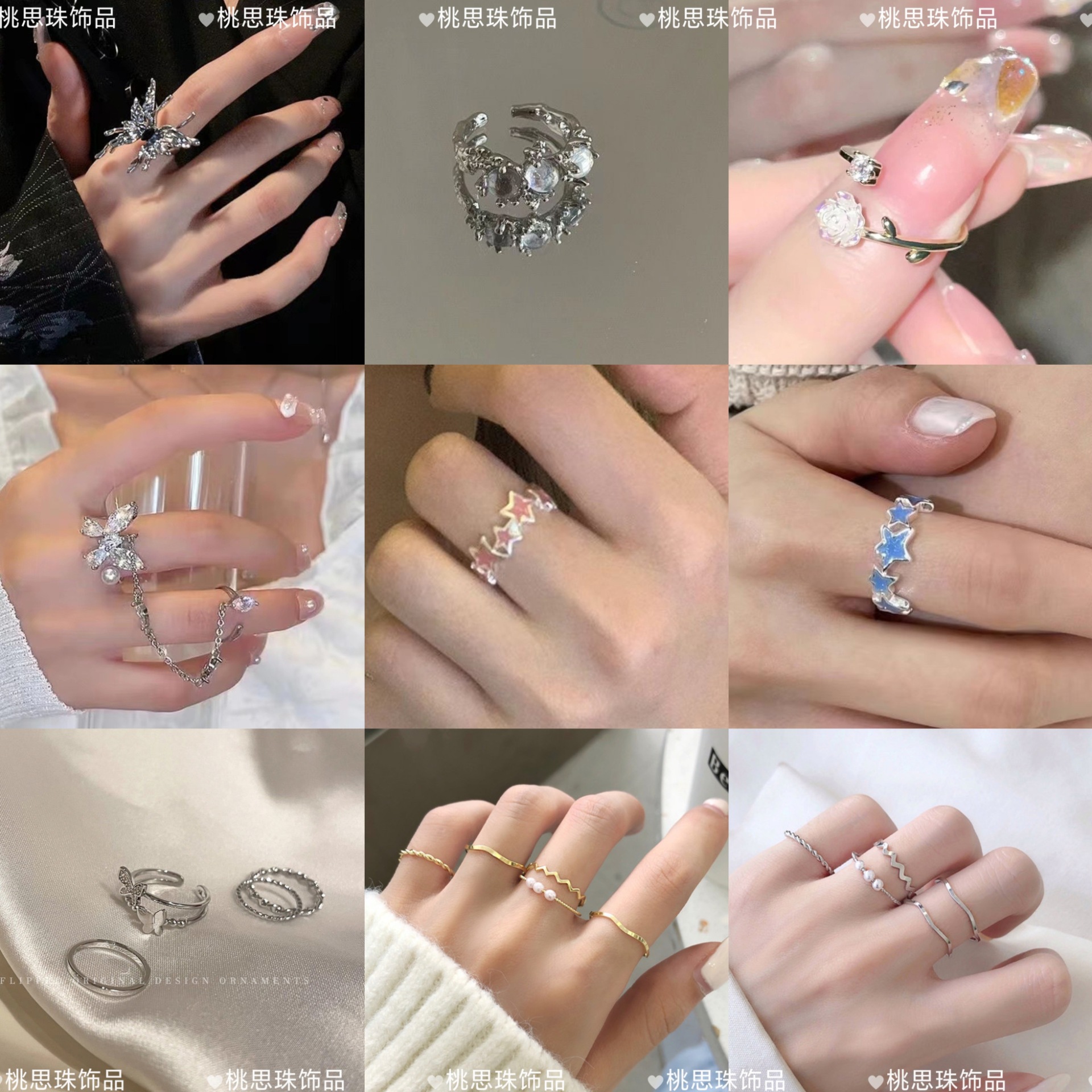 J97 Japanese Animation Peripheral Jewelry Home Teacher Gem Ring Double Ring Joint Personality Trendy Men's Ring Set
