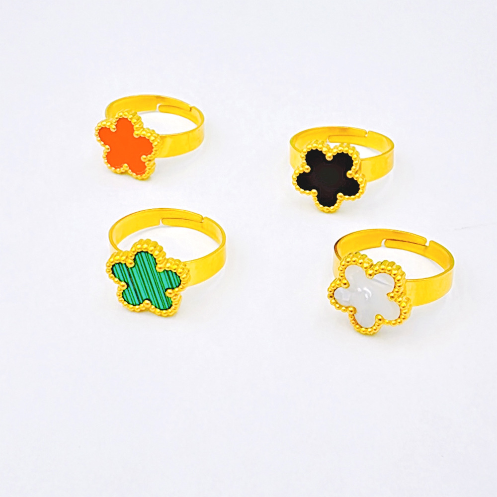 Five-leaf flower ring titanium steel five-leaf clover ring lucky five-leaf flower open ring Amazon hot sale