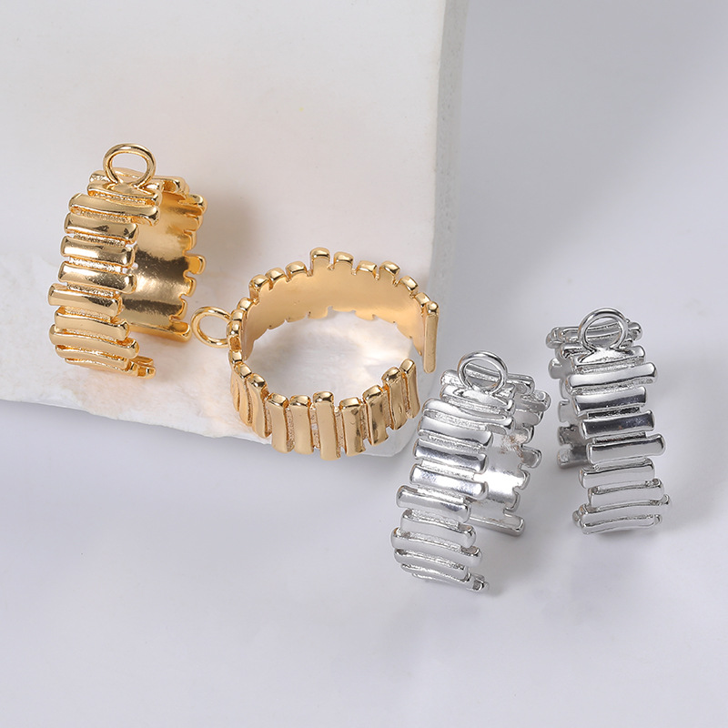 Foreign Trade Cross-Border Irregular Pleated Ring DIY Hand Strap Hanging Ring Adjustable Live Copper Ring Color Retention