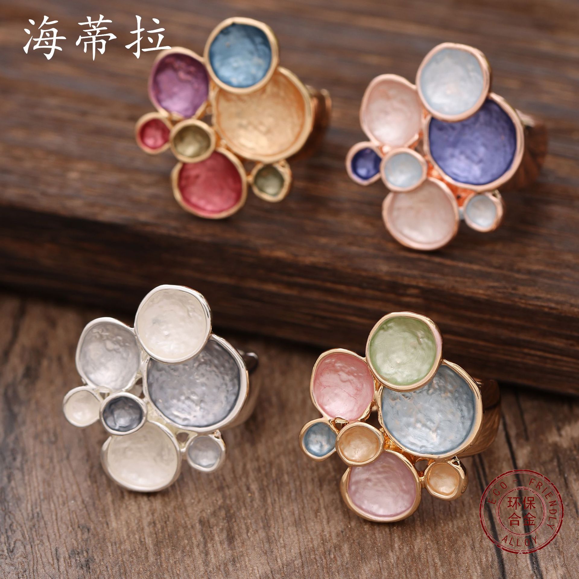 Cross-Border Hot-Selling Enamel Irregular Round Flower Ring Personalized Simple Women's Petal Elastic Alloy Ring