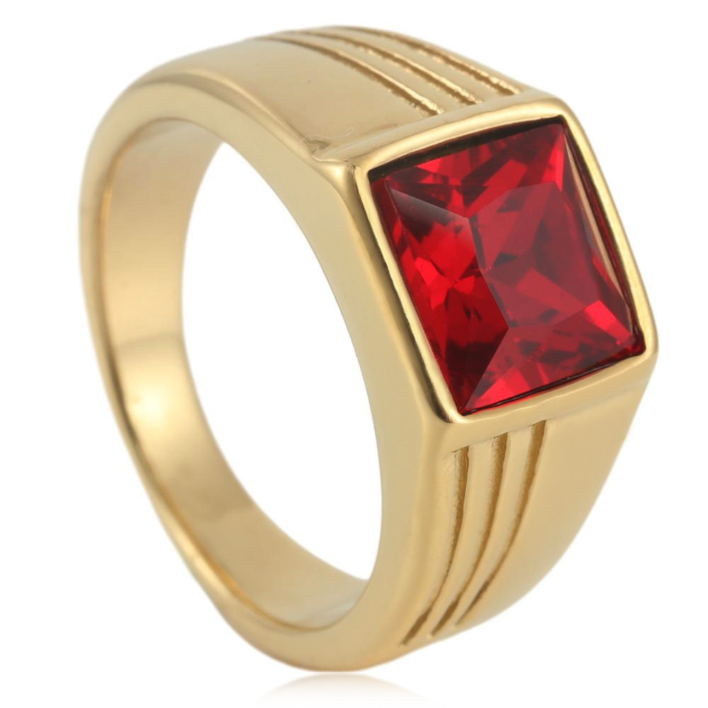 Simple Fashion European and American Personality Trend Ring Inlaid with Red Gem Trend Jewelry Titanium Steel Ring Ring