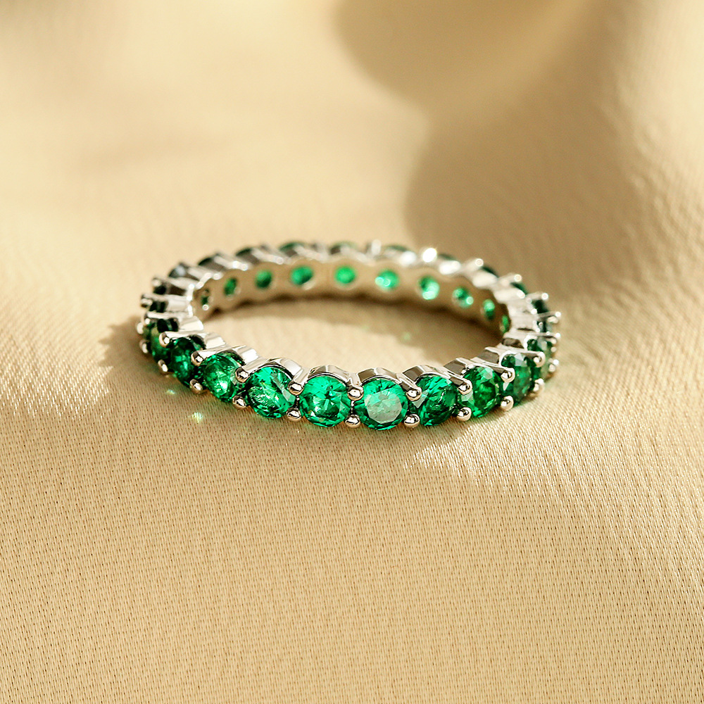 European and American New Emerald Zircon Ring Women's High-grade Niche Personality Retro Ring Simple Exquisite Trendy Jewelry