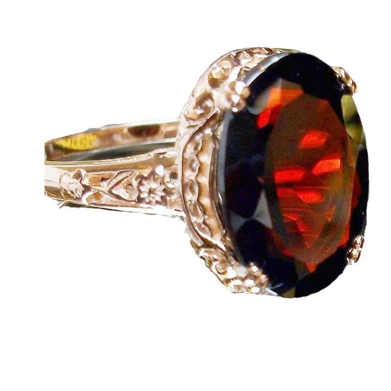 Yingqi Amazon New Oval Zircon Ring Retro Style Alloy Women's Luxury Business Event Ring Alloy