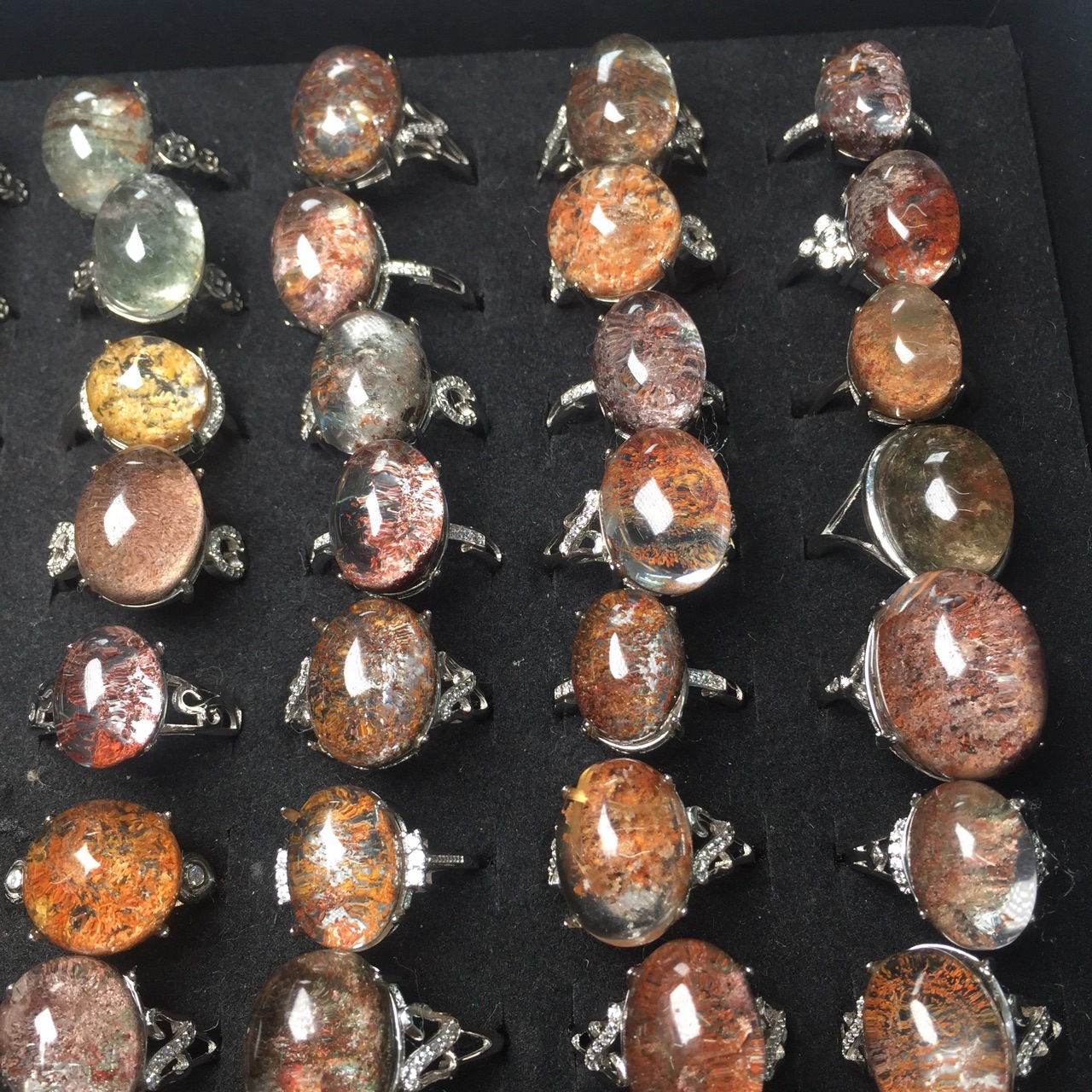Natural Green Ghost Flower Ghost Inlaid Ring Crystal Clean Live Crystal Ring Men's and Women's Fashion Accessories