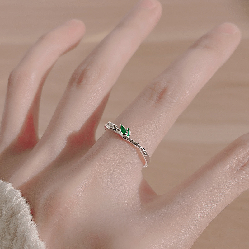 Bamboo Green Leaf Ring for Women, Niche High-End Open Ring, Accessible Luxury Plain Ring, Personalized Ring, Index Finger Ring 2025 New Style