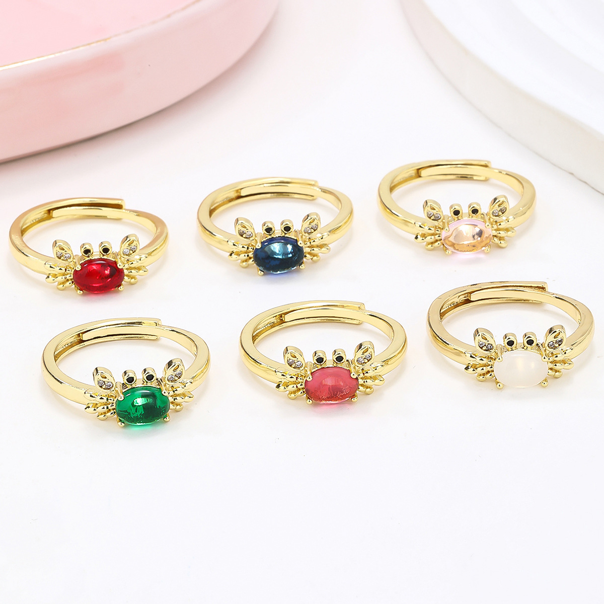 European and American Style 18K Gold Colorful Crab Ring Cute Girl Ring Ocean Small Animal Ring