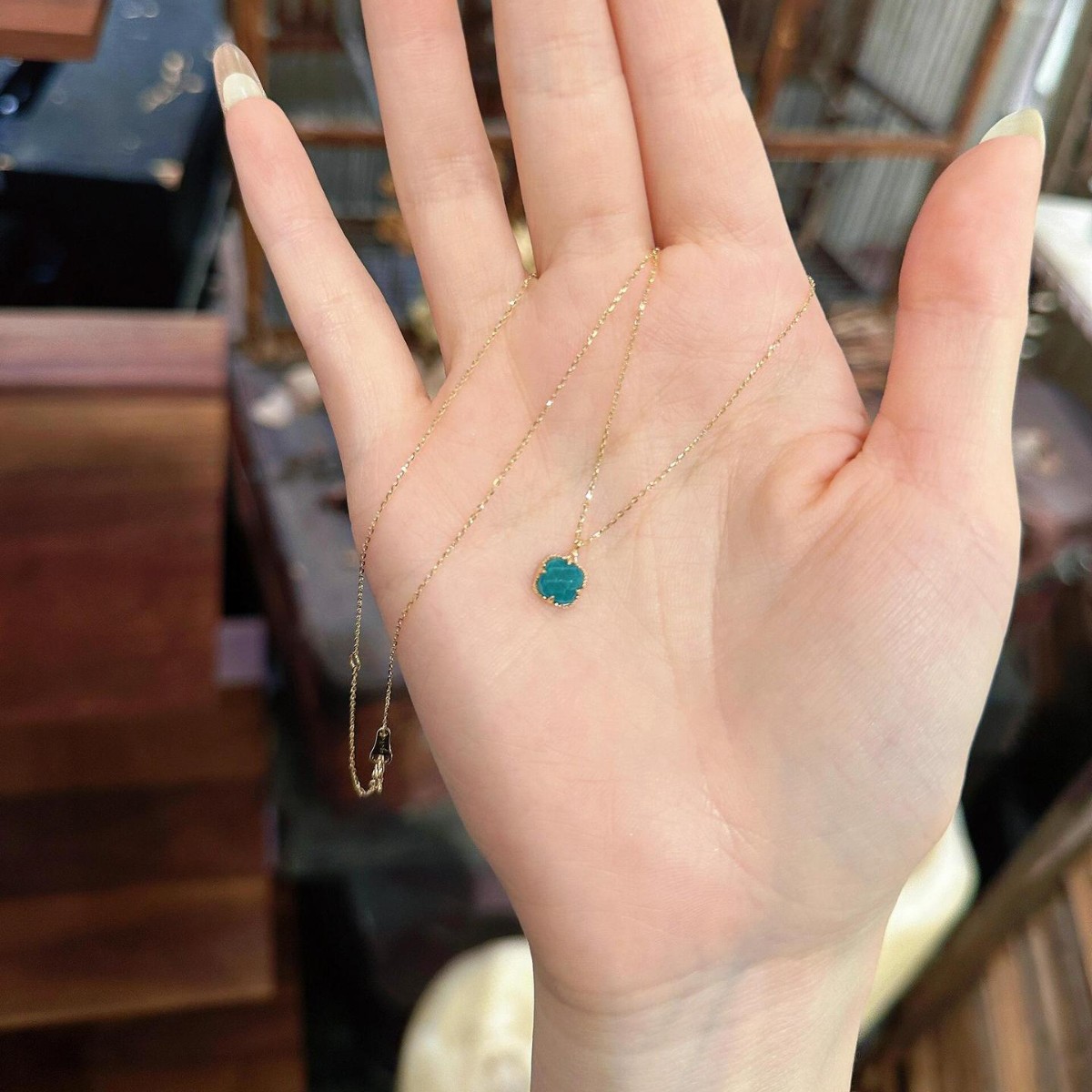 Light Luxury and High-End Green Sugar Cube Pendant Necklace for Women, Exquisite and Versatile Necklace, Unique Niche Design Clavicle Chain