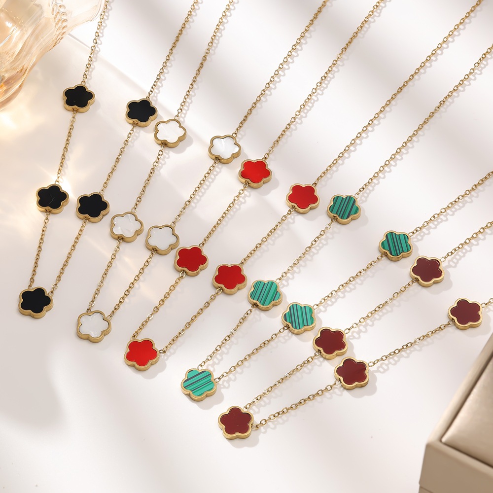 Cross-Border Five-Leaf Clover Flower 11mm Titanium Steel Necklace Women's Niche Plum Blossom Pendant Versatile Clavicle Necklace Factory Ready Stock