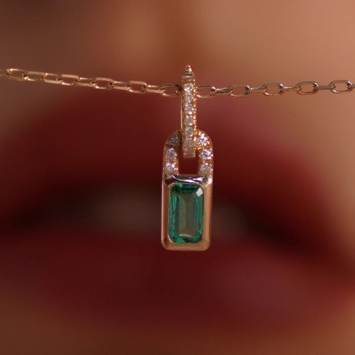 Smoke Lock Heavy Door S925 Sterling Silver K Gold Plated Emerald Necklace Women's European and American Light Luxury High-end Sense Ins Style Clavicle Chain