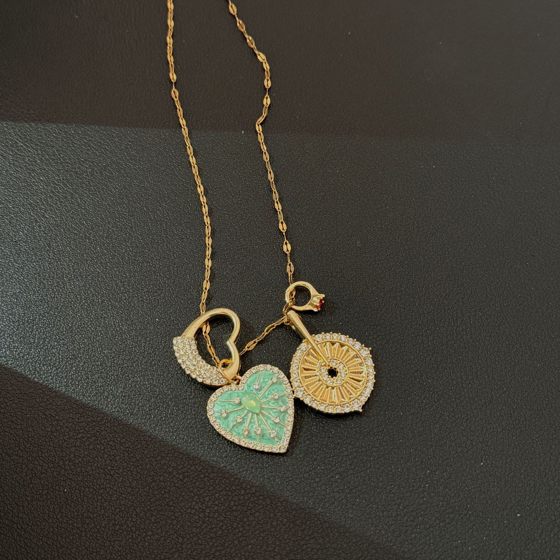 Cross-Border Vintage Stacked Mint Green Necklace Niche Design Sunflower Heart Pendant Exquisite Fashion Clavicle Chain