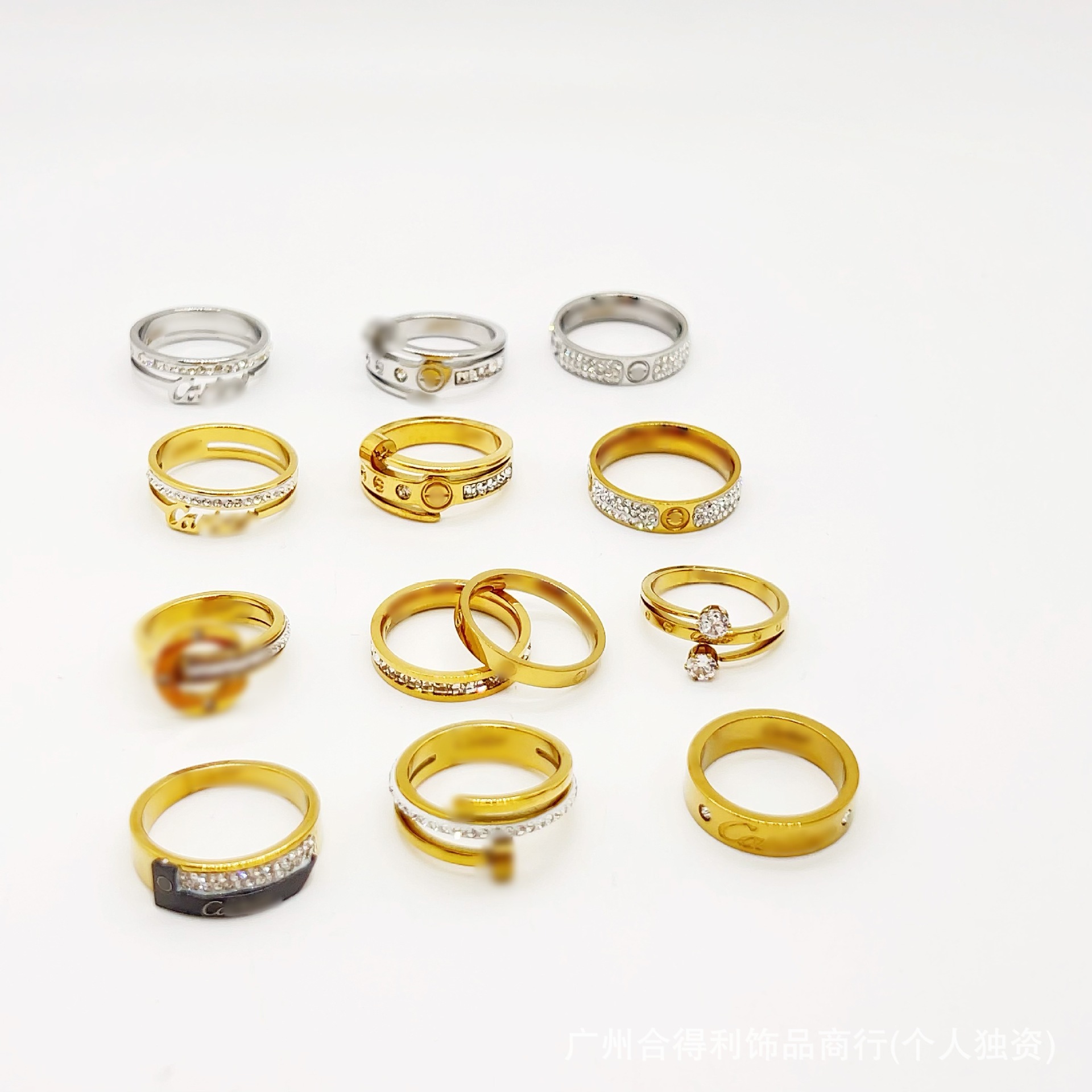 European and American Cross-Border Titanium Steel Ring H Family Double C Diamond Ring Gujia Xiaoxianghuan Family Real Gold Electroplating Jewelry Factory