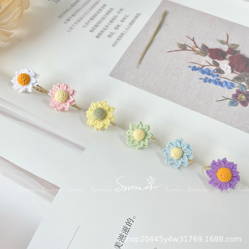Lixia hand-breaking micro hook chamomile Daisy ring handmade crochet woven niche summer Mori style fresh