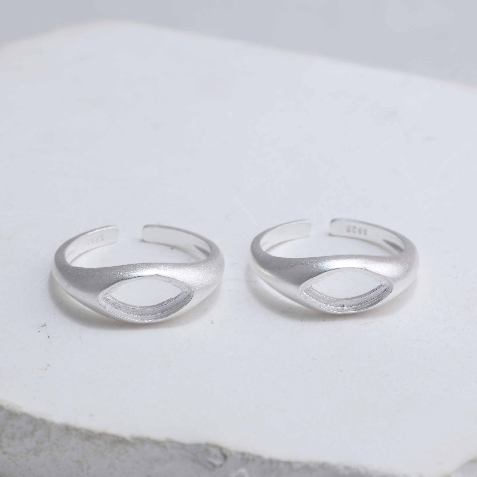 S925 Sterling Silver Women's Marquise Ring Opening Adjustable Inlaid with Natural Chrysoprase Agate Jade Ring Setting