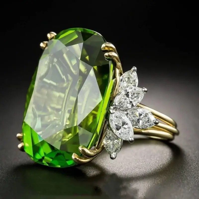 European and American Cross-Border New Olive Green Ring Niche Design Fresh and Simple Ring Light Luxury High-End Jewelry Accessories