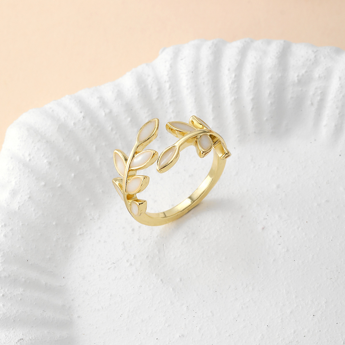 Cross-Border Hot-Selling European and American Style Leaf Ring, Simple and Fashionable Leaf Shape Opening Adjustable Ring in Stock