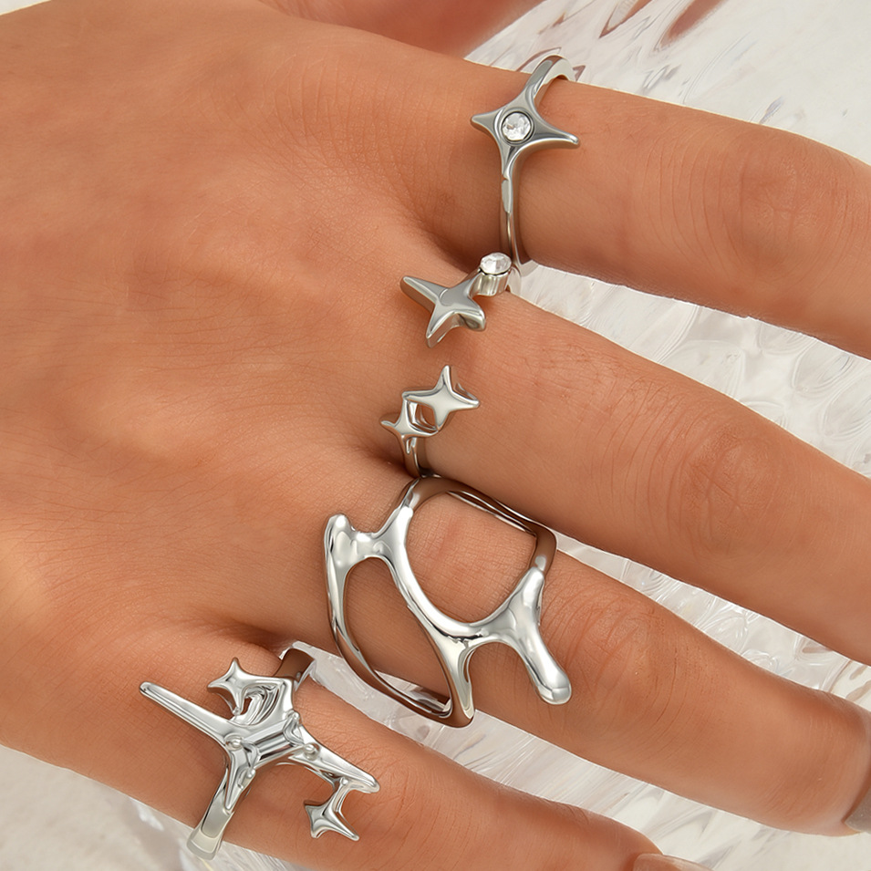 European and American Cross-Border Hot-Selling Asymmetrical Zircon Star Ring 5-Piece Set Environmentally Friendly Alloy Elegant Index Finger Ring Wholesale