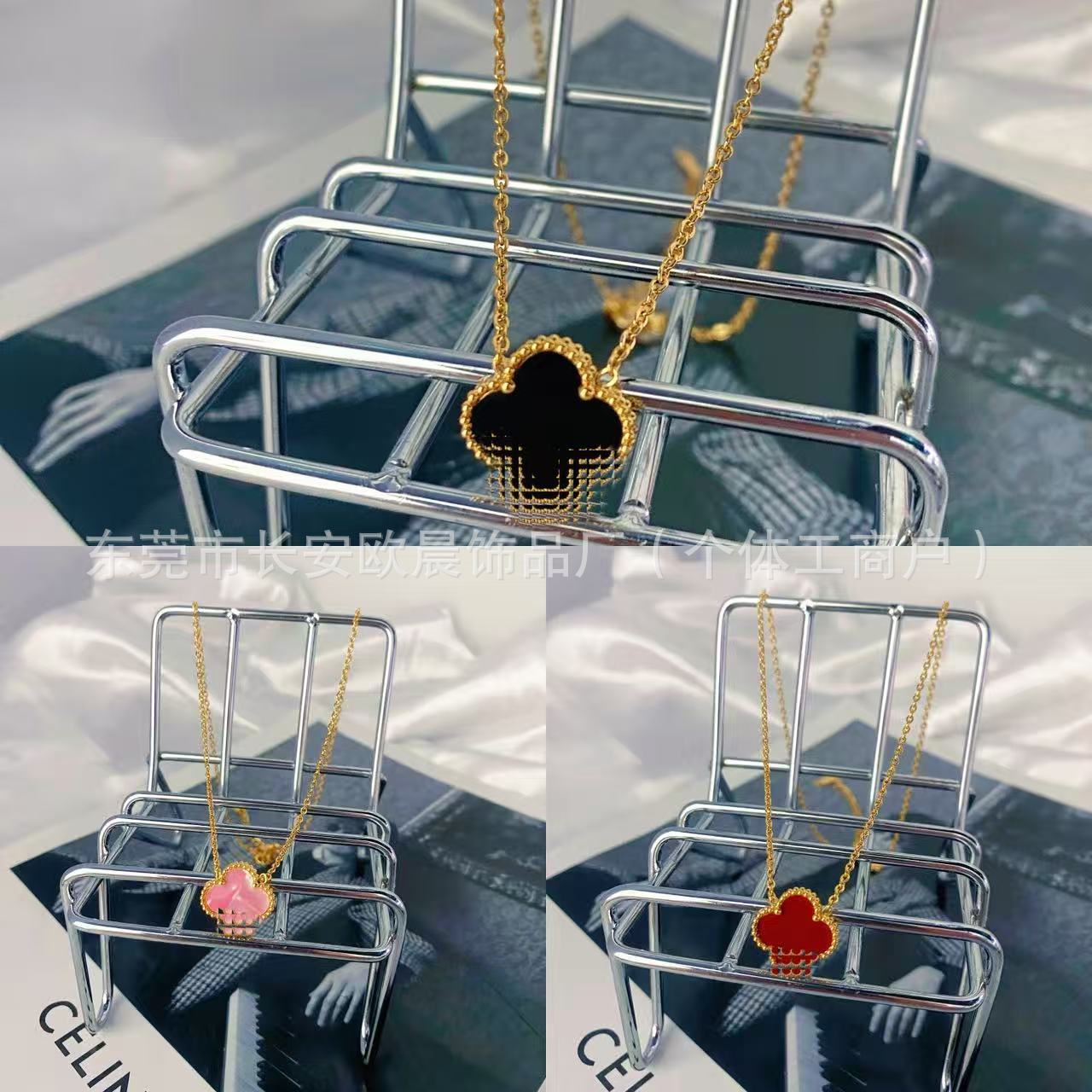 Hot-Selling Elegant Socialite Lucky Four-Leaf Clover Flower Titanium Steel Necklace Female Internet Celebrity Accessible Luxury Niche Five-Flower Clavicle Necklace