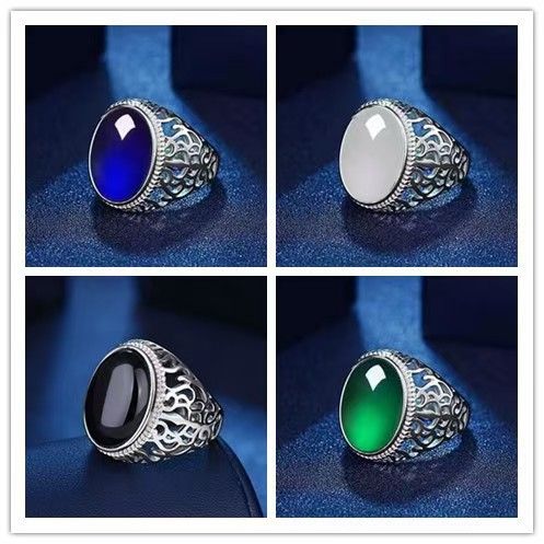Cross-Border Hot-Selling Luxury Gemstone Alloy Ring Emerald Retro Ring Men's Personalized Hollow Domineering Men's Ring