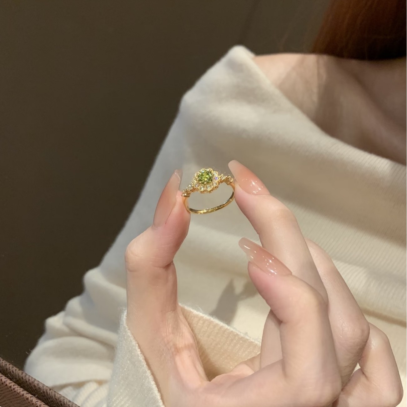 New Green Diamond Ring, High-End Design, Accessible Luxury, Niche, Exquisite, Versatile, Fashionable, Ins Elegant, Cool and Adjustable