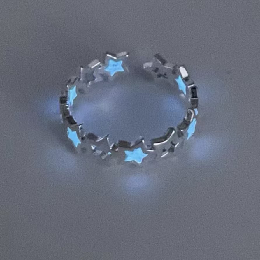 European and American Cross-Border Popular Jewelry Halloween Luminous Five-Pointed Star Accessories Fluorescent Luminous Hollow Small Star Ring