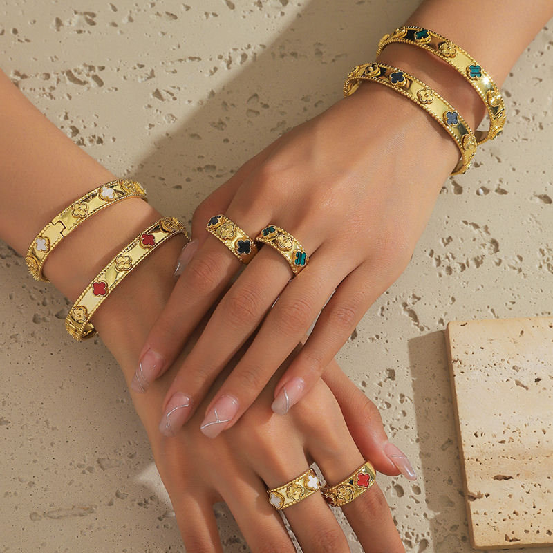 Cross-border Explosive Retro Four-leaf Clover Ring Bracelet suit Niche Light Luxury Design Bracelet Ring suit Women