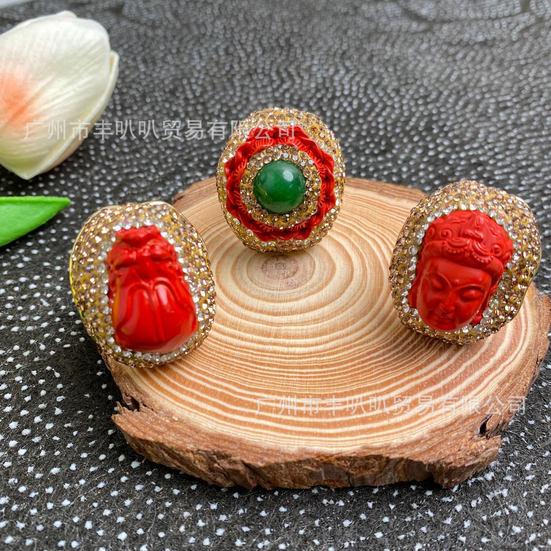 Jindian Red Series Green Gemstone Buddha Statue Pixiu Ring Women's Jewelry