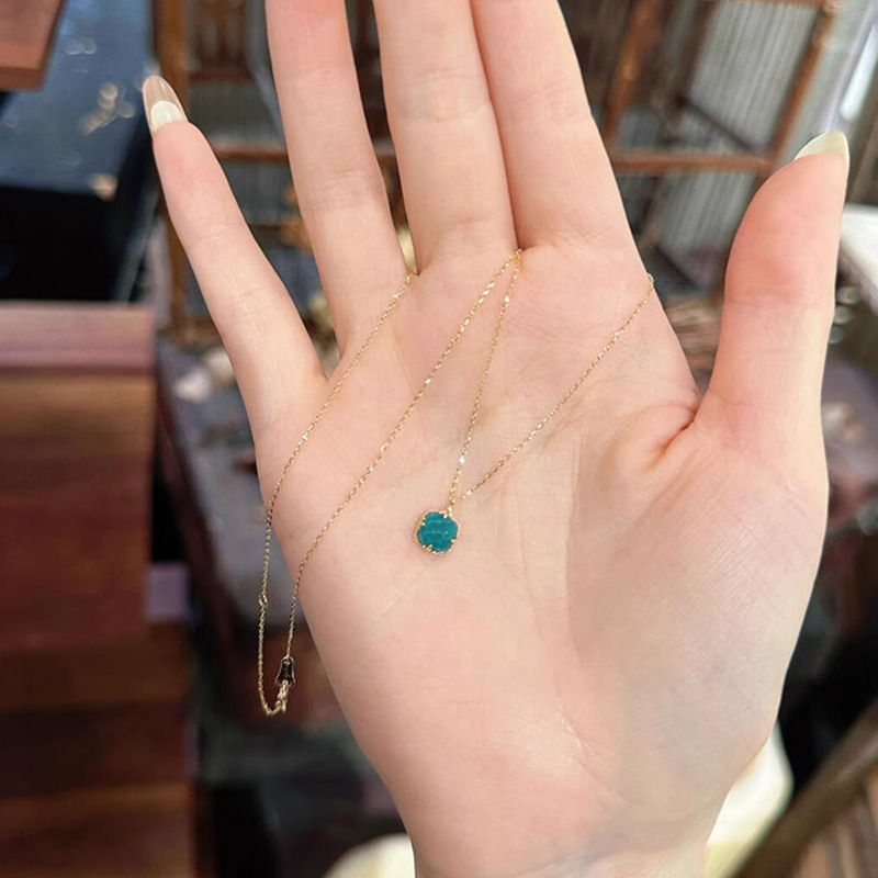 Green Small Sugar Cube Necklace for Women, Light Luxury Fashion, High-End Exquisite Collarbone Chain, Simple Versatile Collarbone Chain Accessory