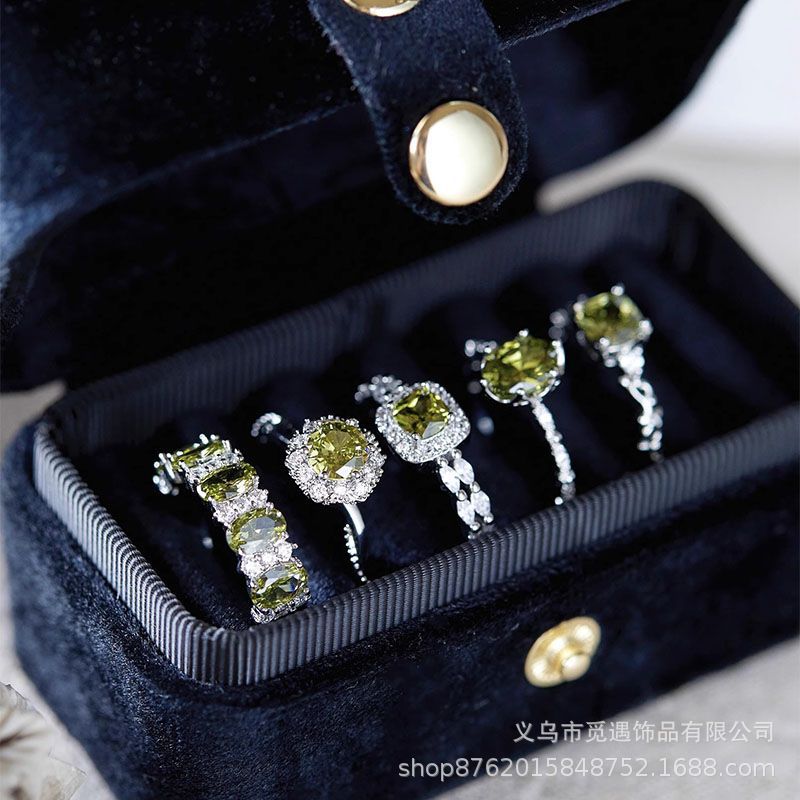 Misty Olive Green Zircon Ring, French Design, Niche, Exquisite, Sparkling, Stackable Index Finger Ring, Fashionable New Style