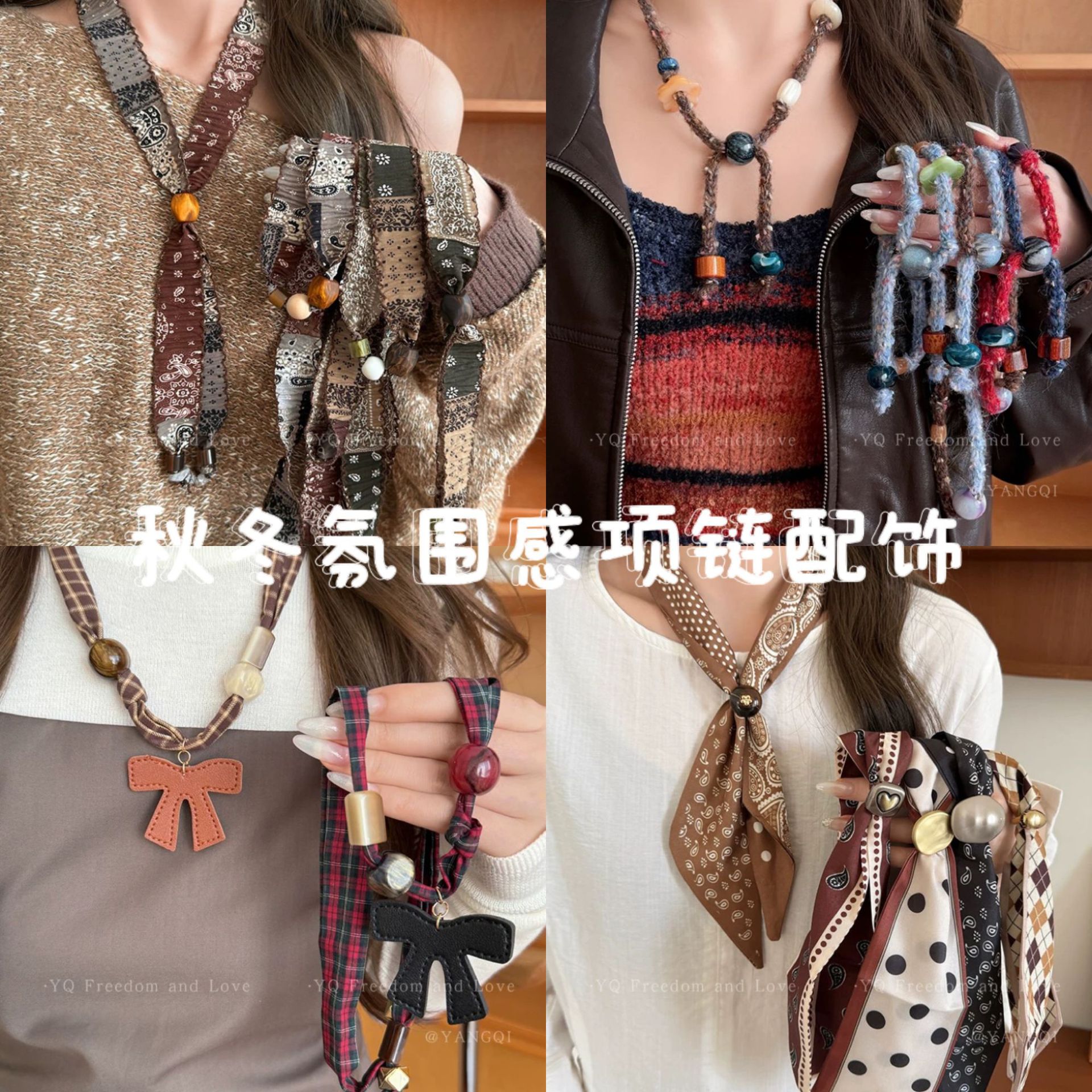 Leather Beaded Heart Pendant Necklace Niche Retro Design Sweater Chain Ethnic Style Versatile Necklace for Women