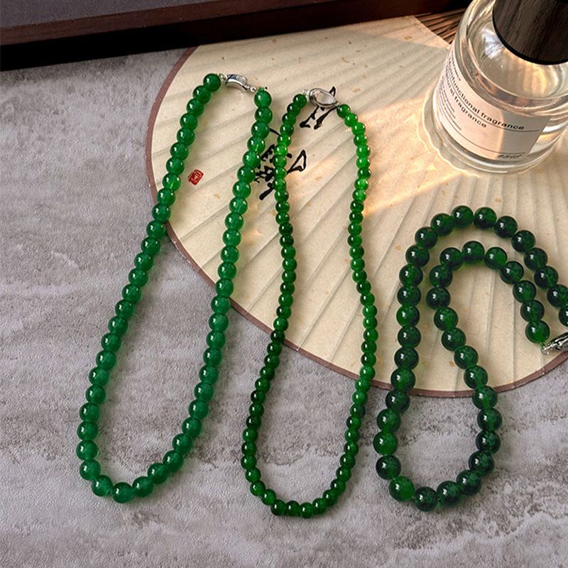 New Chinese-style Green Yuanbao Buckle Necklace Women's Light Luxury Niche High-end Beaded Clavicle Chain Retro Elegant Accessories