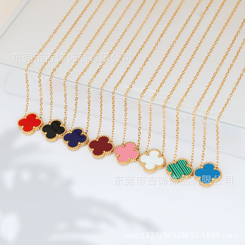 Hot Sale High Version Fanjia Four-leaf Clover Necklace Single Flower Natural Fritillaria Pendant Double Sided Lucky Grass Clavicle Chain Batch