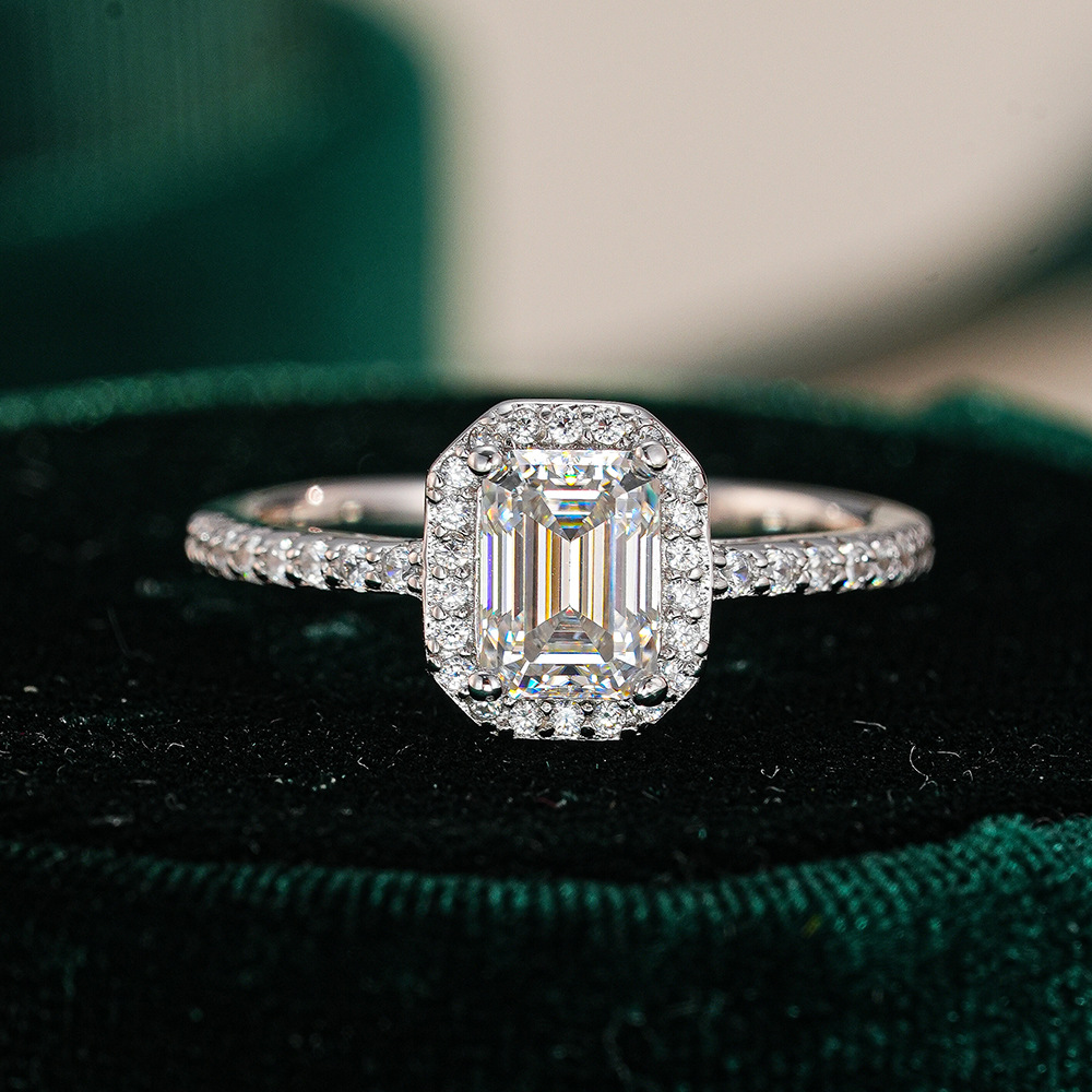 Korean Style Jewelry Moissanite Personalized Ladder t Square S925 Silver Ring Women's Rock Candy Square Accessible Luxury Hand Jewelry Emerald