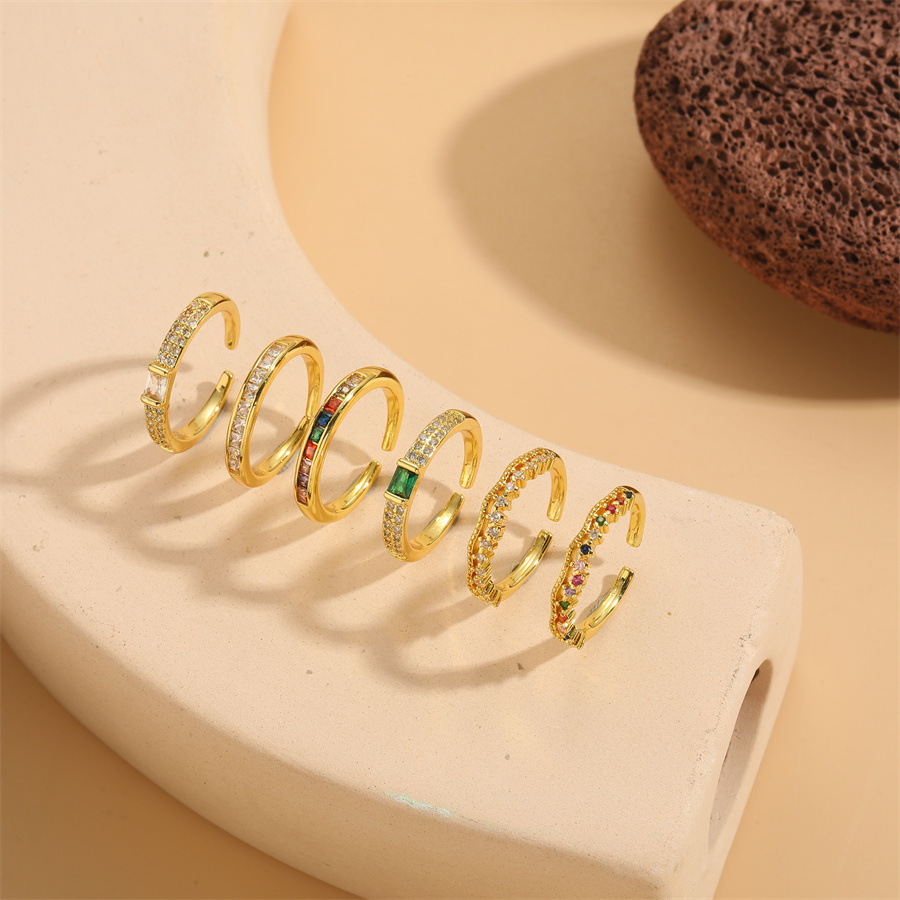 European and American hot sale exquisite simple color zircon open ring female ins style emerald personality adjustable ring