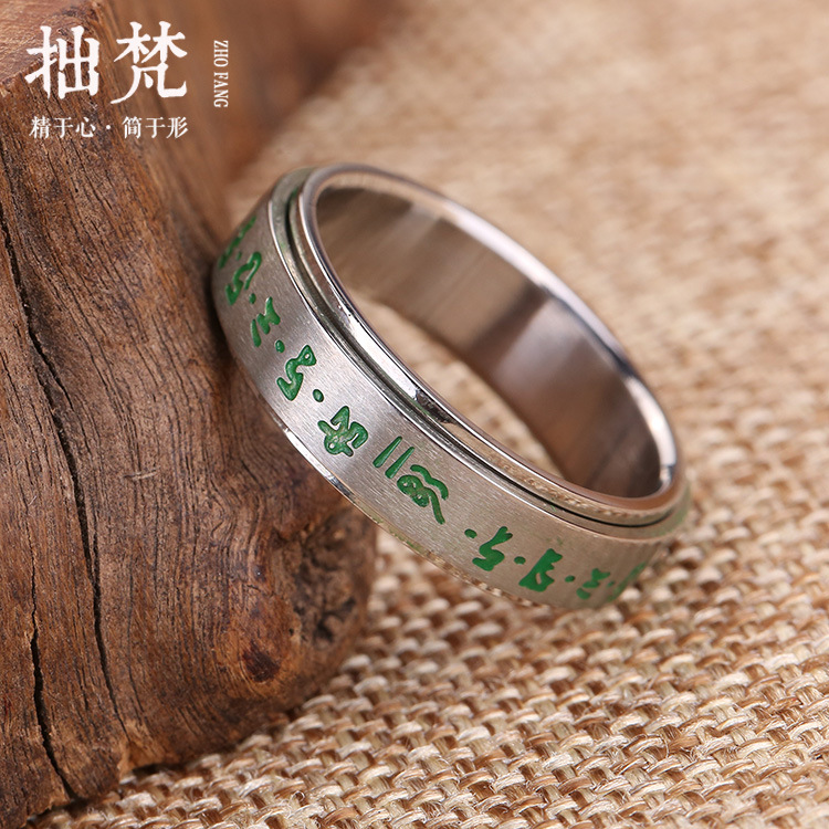 Green mother titanium steel ring exquisite index finger protection couple men and women ring