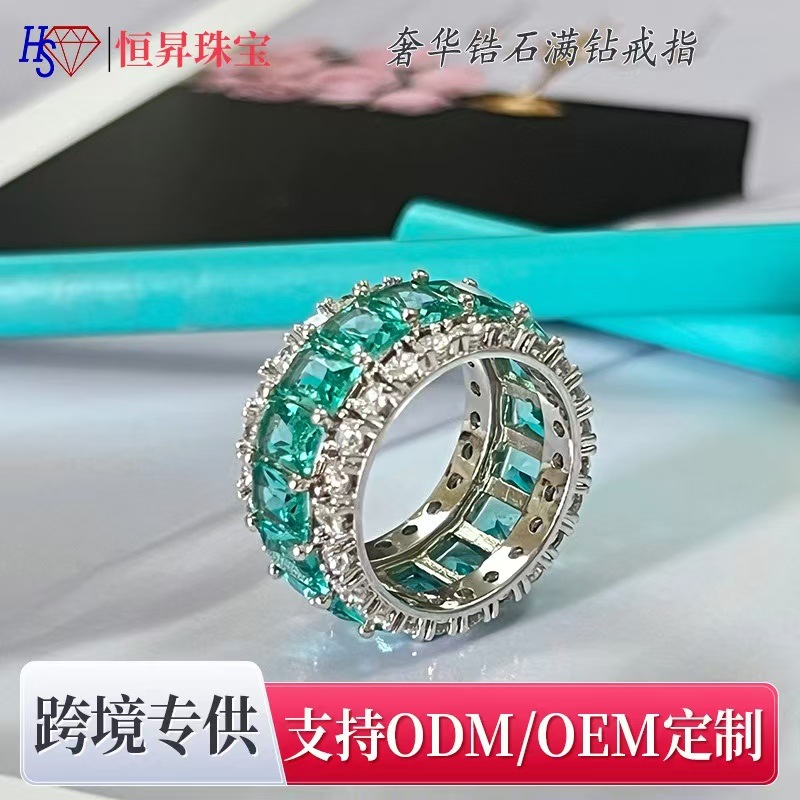Light Luxury Zircon Full Diamond Ring for Women, Princess Style Versatile Closed Light Green Diamond Ring, Fresh and Sweet Style Ring