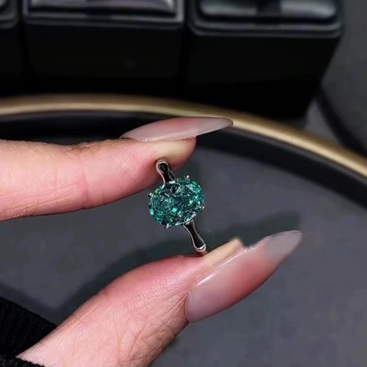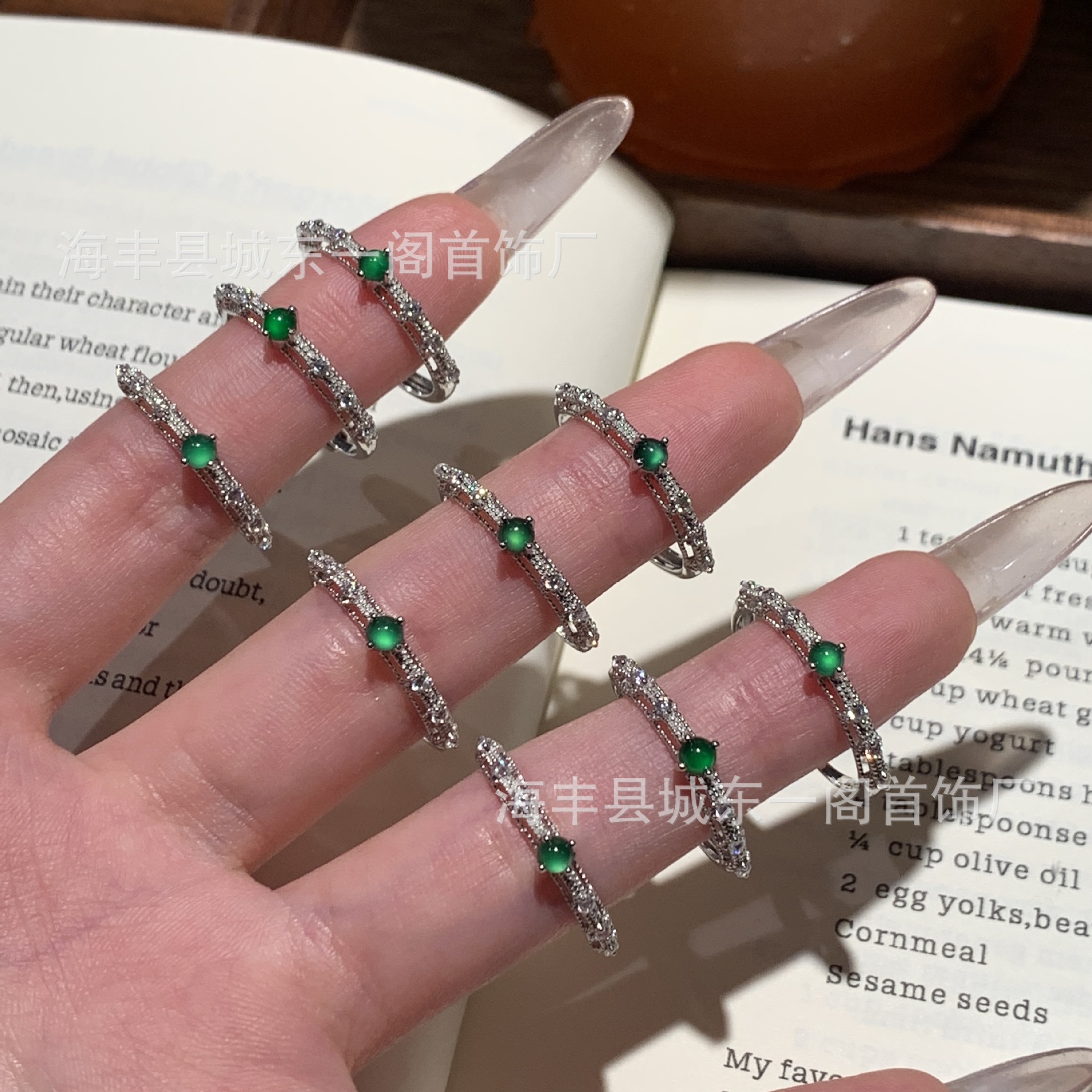 Green Super Flash Zircon Ring Niche Unique Simple Light Luxury Bamboo Finger Ring