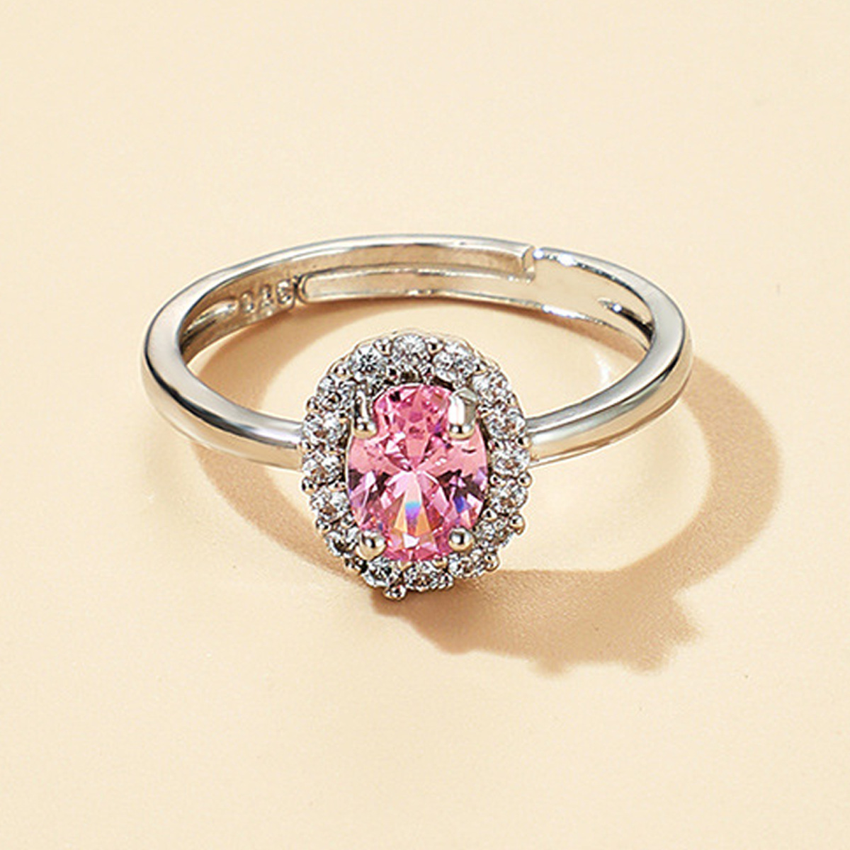 Simulation Pink Tourmaline Ring Women Live New Elegant Color Diamond Ring Oval Blue and Green Zircon Color Treasure Ring