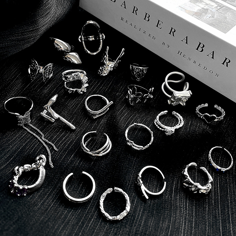 Simple All-match Silver Series Ring Geometric Lava Flow Sue Food Finger Ring Girl Personalized Couple Opening Ring Trendy Men