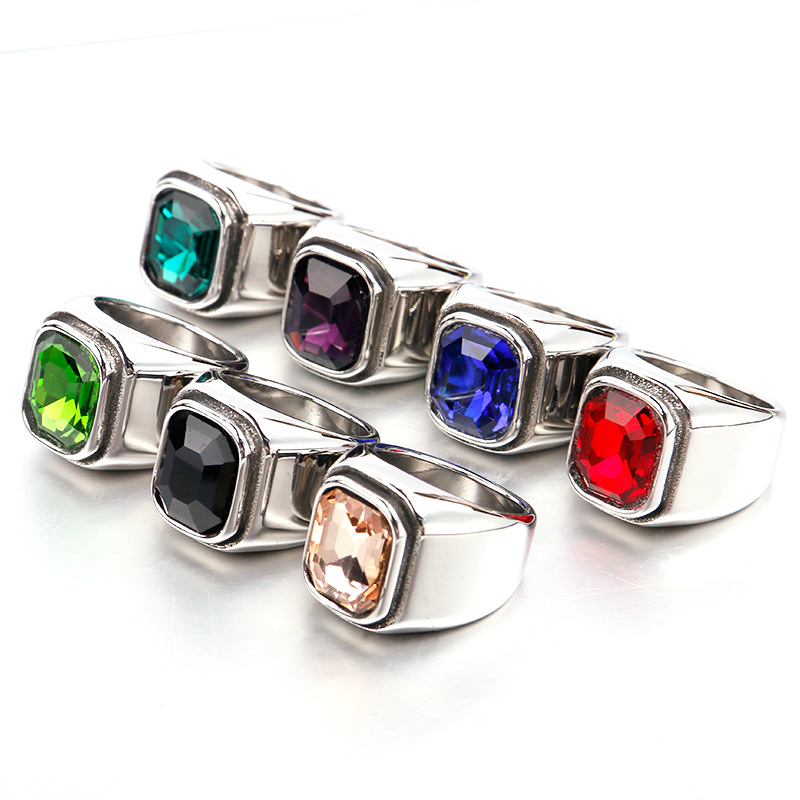 Haiteng Titanium Steel Jewelry Wholesale Personality Trend Multicolor Gem Men's Titanium Steel Ring Source Factory Outlet