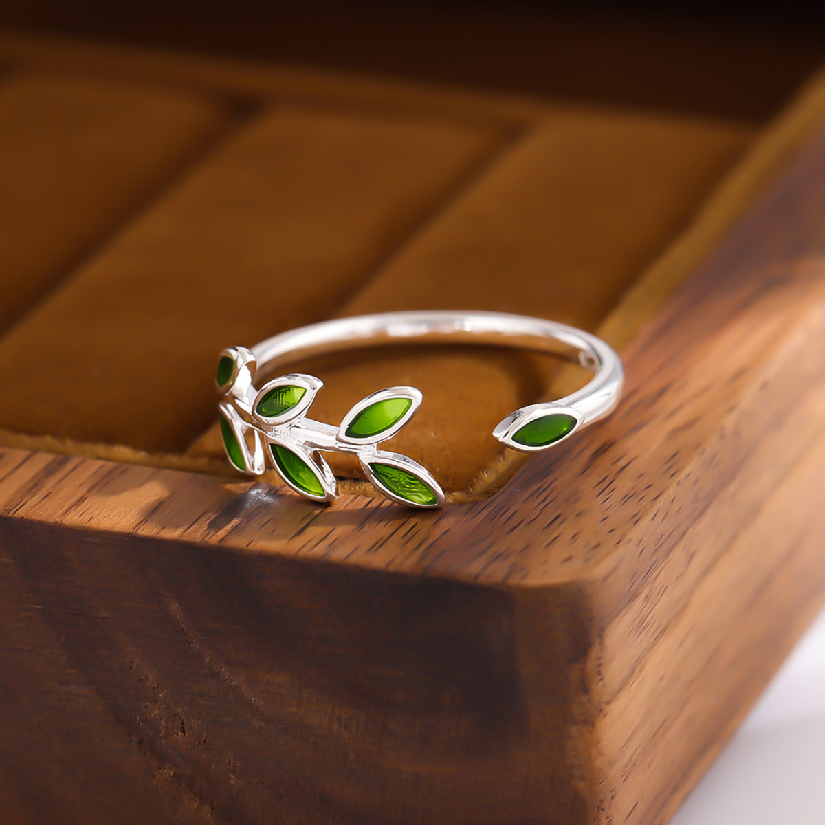 Fashion green leaves drop oil atmosphere creative leaves personality opening ring women wholesale