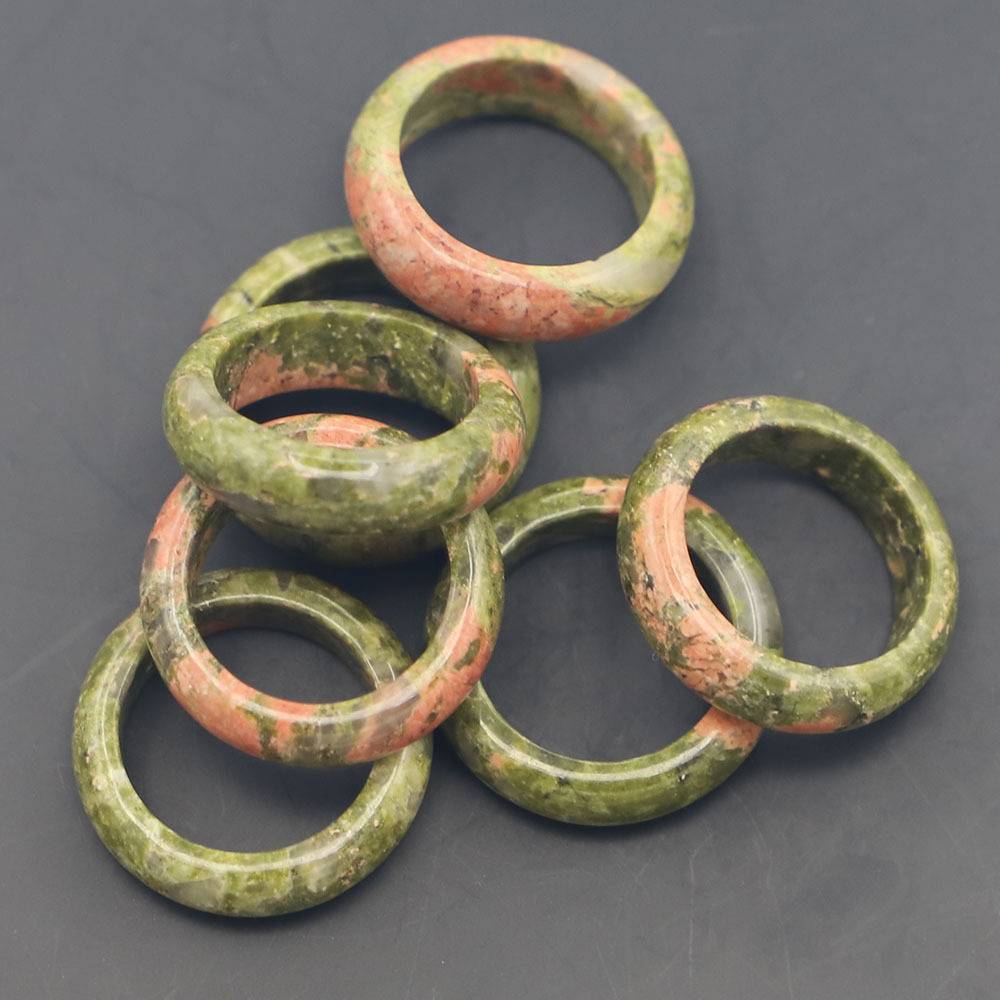 Amazon's Most Popular Natural Stone Half Treasure Flower Green Stone Flat Ring Ring Ring Running Ring Width 6MM Ring Wholesale