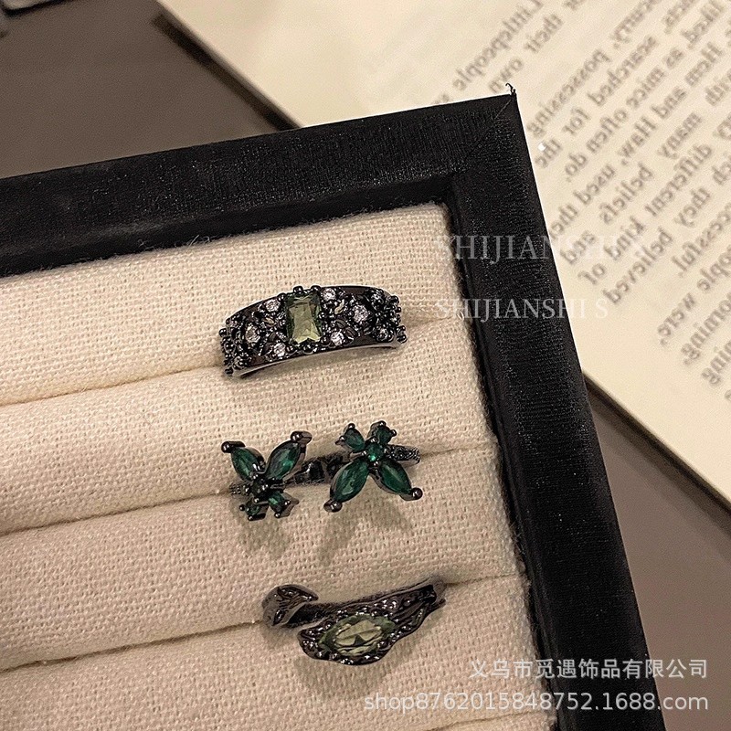 "Green Shadow Butterfly" Luminous Hollow Green Zirconium Fashion Ring Women's Light Luxury Snake-Shaped Commuting Personalized Index Finger Ring
