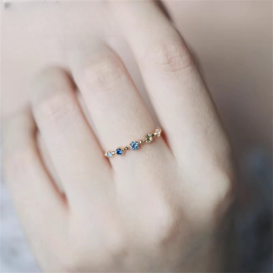 [10] E-commerce network red live retro gorgeous color small mushroom round colored diamond ring women's copper gold-plated jewelry