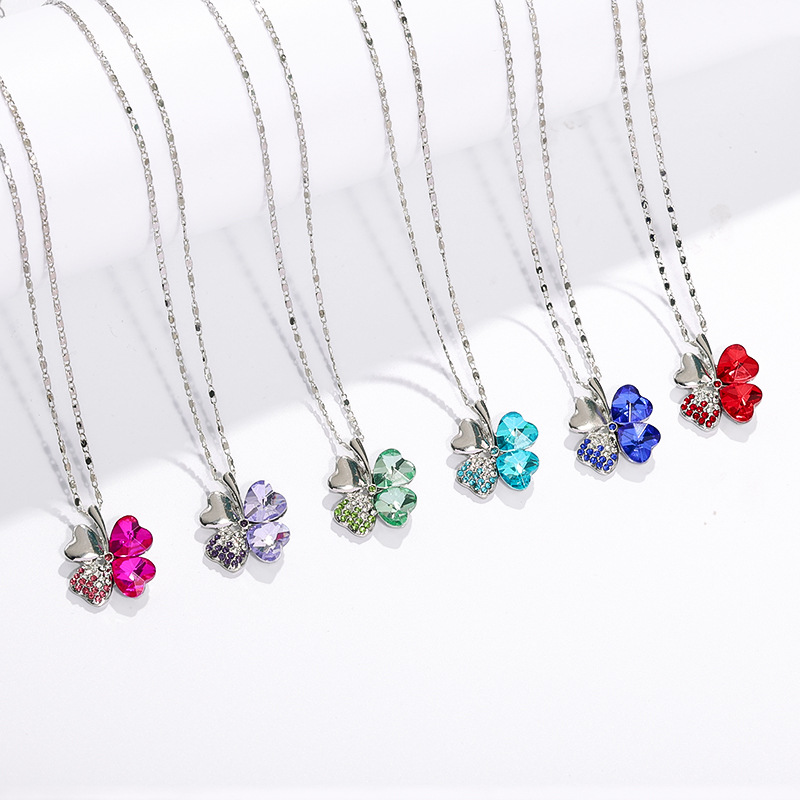 European and American Versatile Jewelry Austrian Crystal Bridal Accessories Collarbone Necklace Lucky Clover Necklace Women's Jewelry