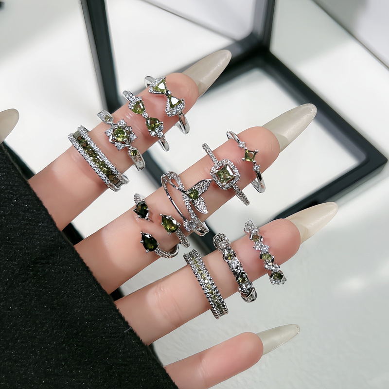 Ring Women's Elegant Niche Design Sense Exquisite Simple Olive Green Zircon Fashion Cold Style Personalized Open Ring
