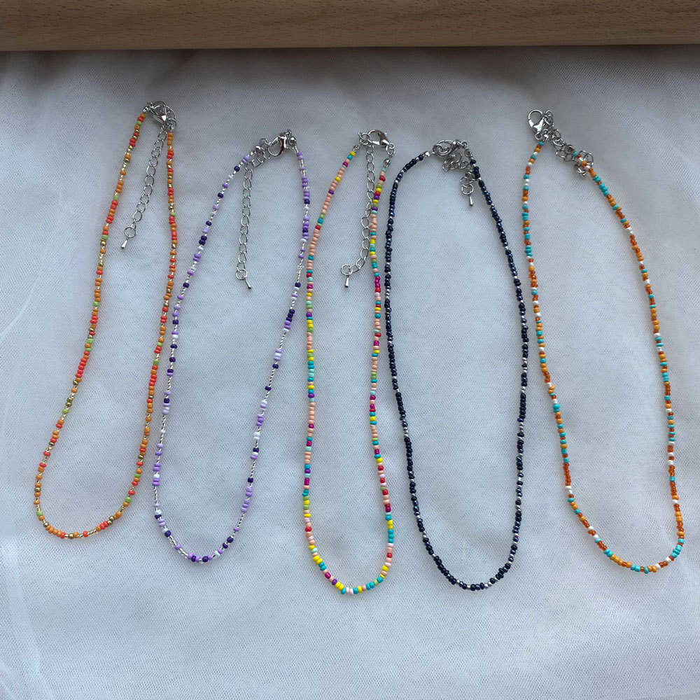 2025 Korean Colorfulful Beaded Rice Bead Necklace for Women Hyuna Style Rainbow Rice Bead Necklace Colorfulful Necklace Factory Direct Supply