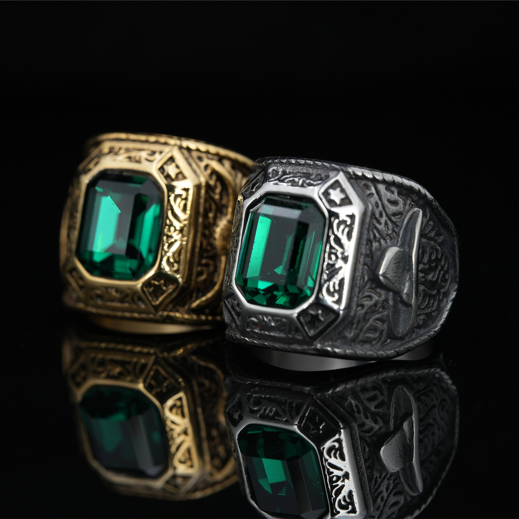 European and American Titanium Steel Eagle Gem Ring Punk Cro Trendy Men's Ring English Jewelry Birthday Gift Casting Ring
